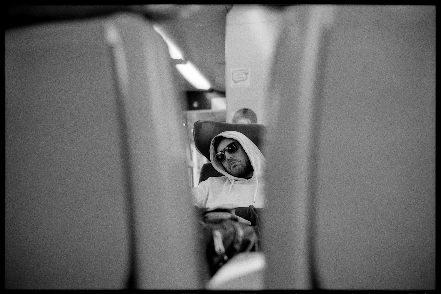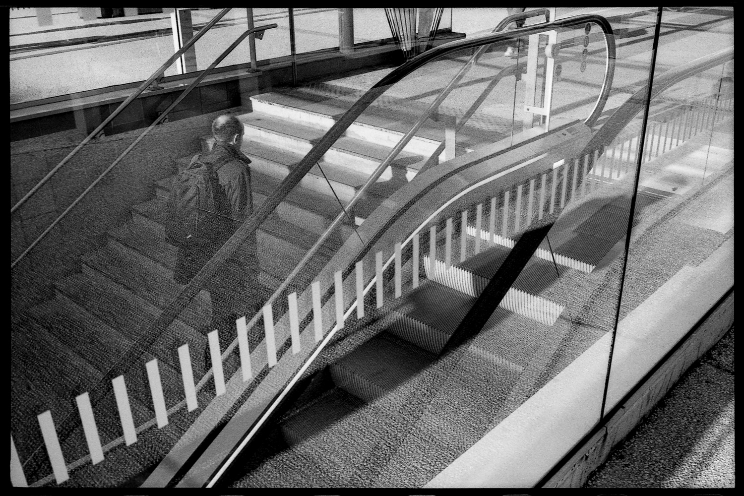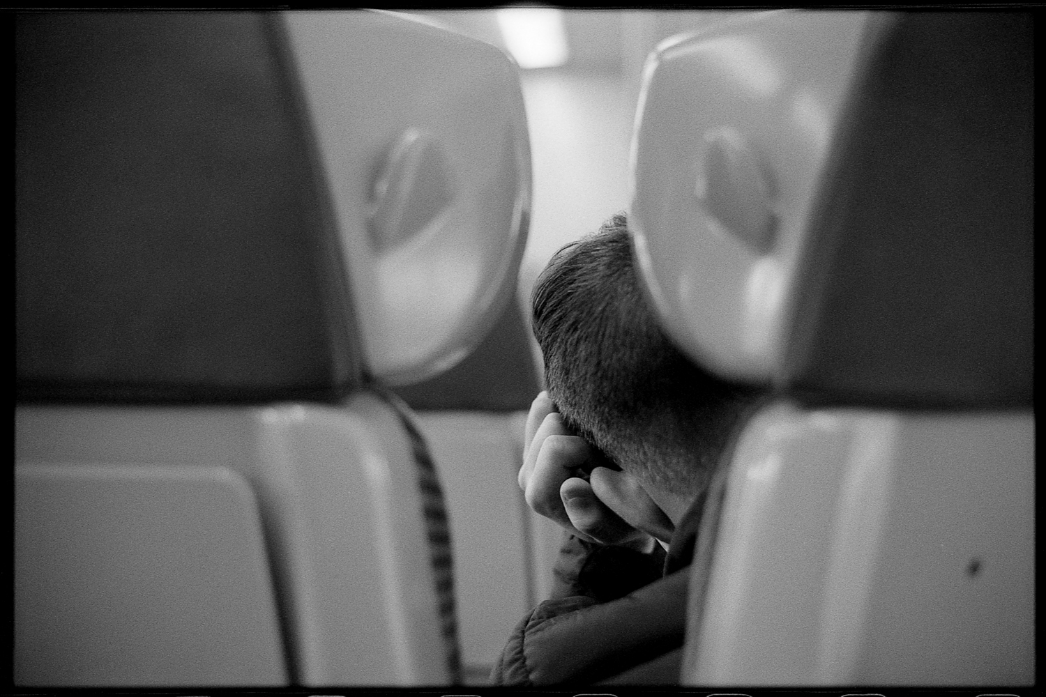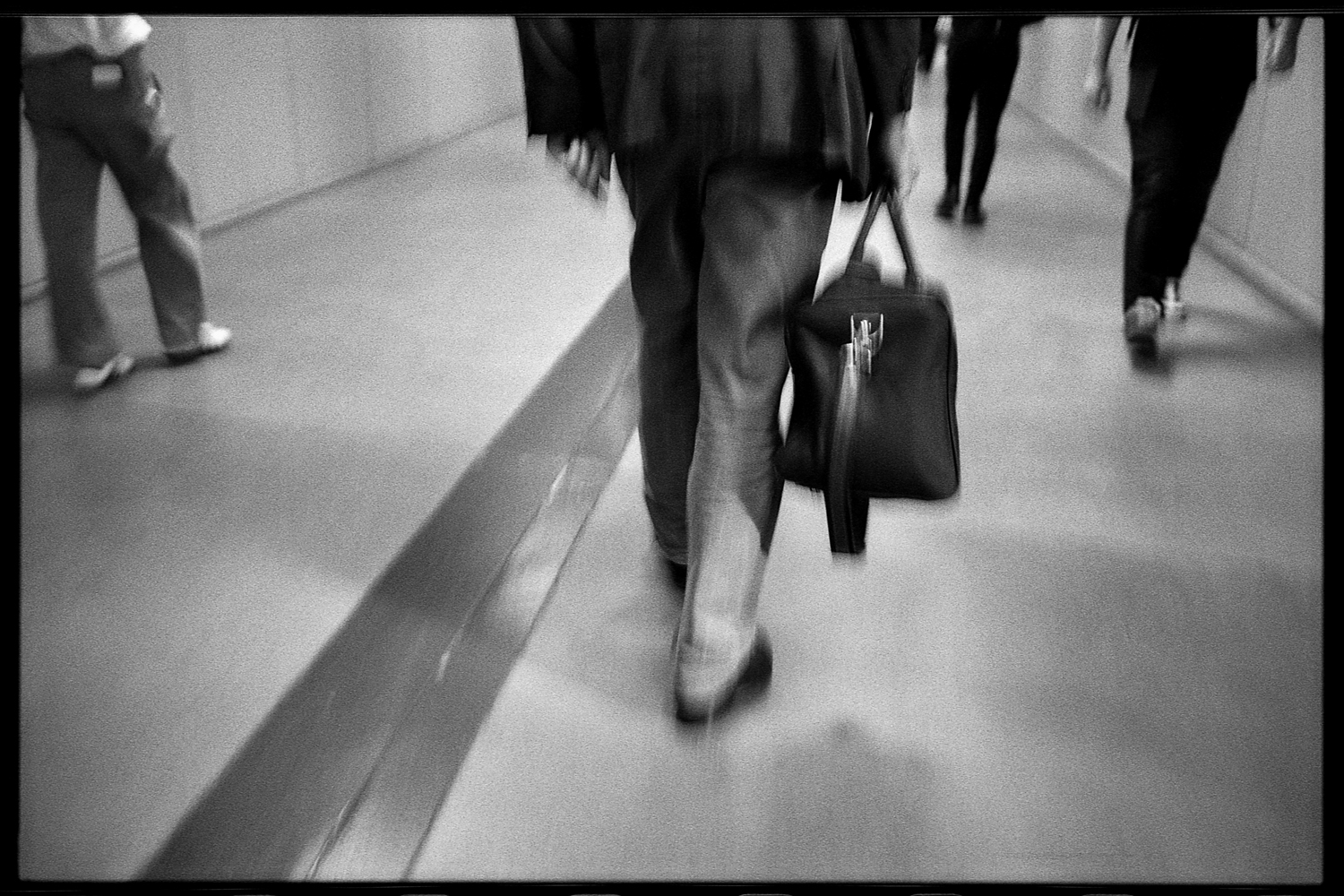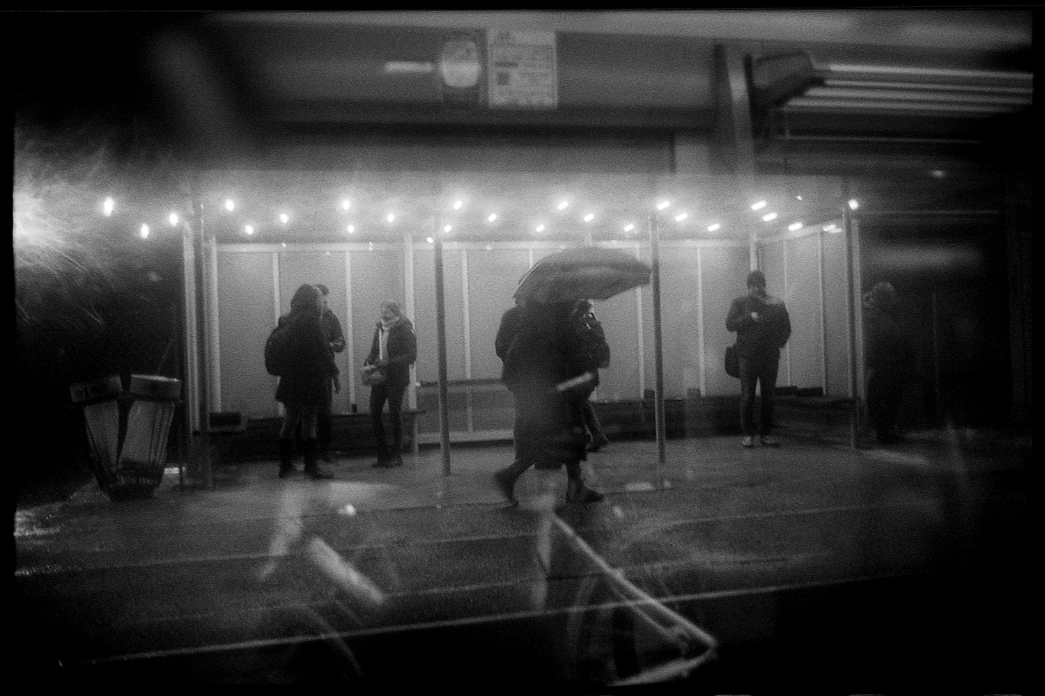 Tentative impressionniste et monochrome de traduire l’atmosphère quotidienne des pendulaires, photos volées, hymne à la routine, à la monotonie, à l’entre-deux de ces moments suspendus.
